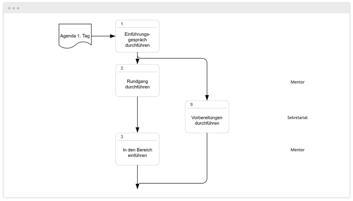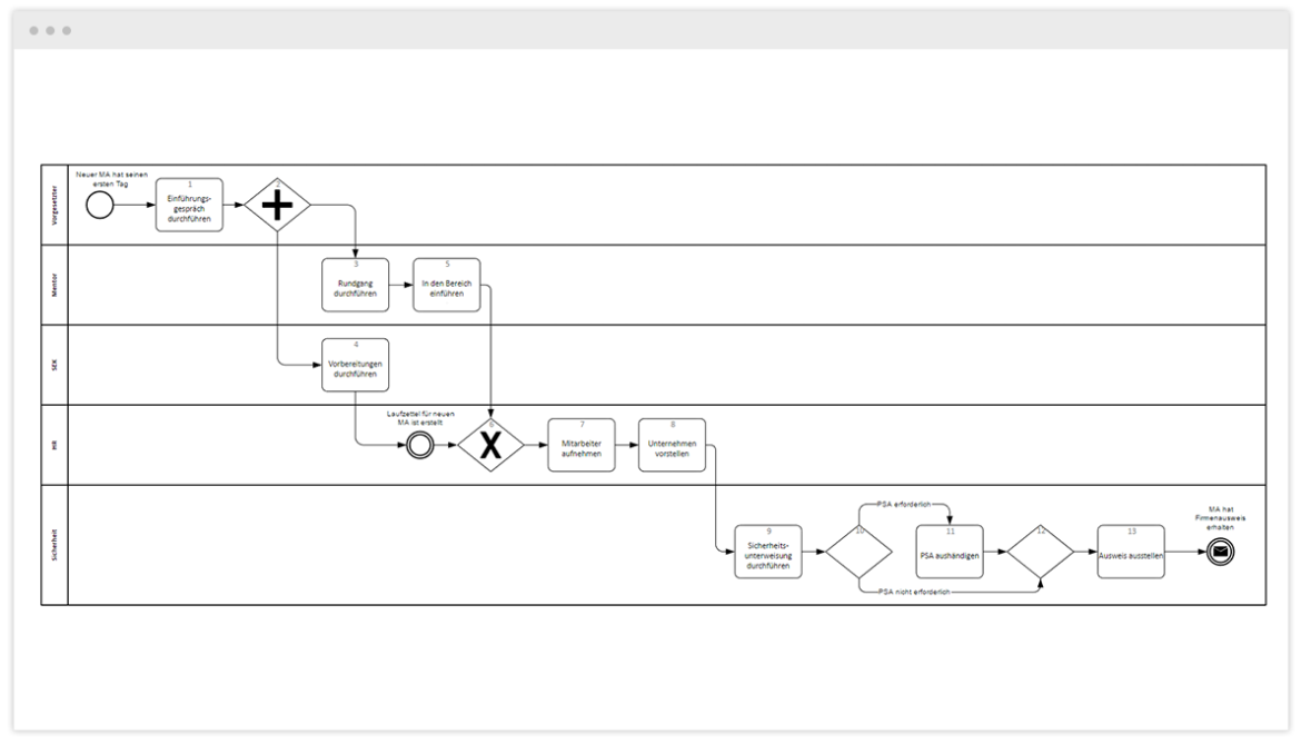 Ein Highlight dieser Referenzprozesse ist die – wie in viflow üblich – übersichtliche Darstellung der Abläufe in Form von Swimlane-Grafiken. Diese Prozessdarstellung ist für den Anwender derart leicht verständlich, dass weder für den Modellierer noch für den späteren Betrachter der Abläufe zeit- und kostenintensive Schulungen eingeplant werden müssen.