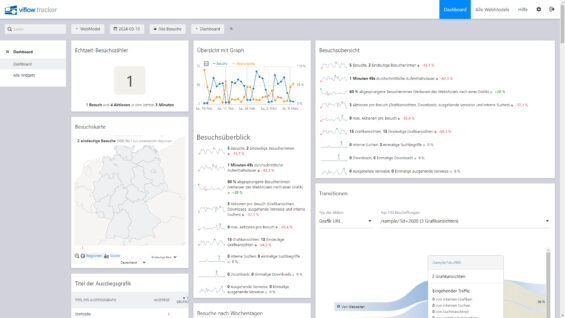 Das Addon viflow tracker gibt eine Übersicht über die aktuelle Nutzung von viflow WebModels. Dabei sind die Dashboards in der Analysedarstellung, z.B. als Säulen- oder Kreisdiagramme sowie Schlagwortwolken, einfach und schnell anpassbar. Individuelle Dashboards erlauben die freie Zusammenstellung aller verfügbaren Kennzahlen und Analysekriterien und können mit eigenem Namen dauerhaft im System angelegt werden. Analysezeiträume sind frei wählbar und ermöglichen so eine Abbildung von Nutzungstendenzen.